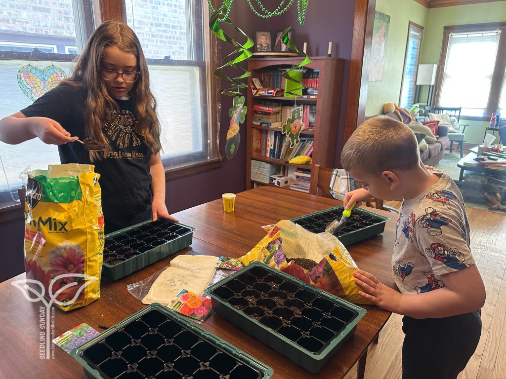 I found these awesome seedling trays at Aldi this week and they were PERFECT for our little gardening project. Complete with clear lids that really help with the greenhouse effect to keep warmth and moisture where the plants need it! The best part is I ideally reuse these next year!