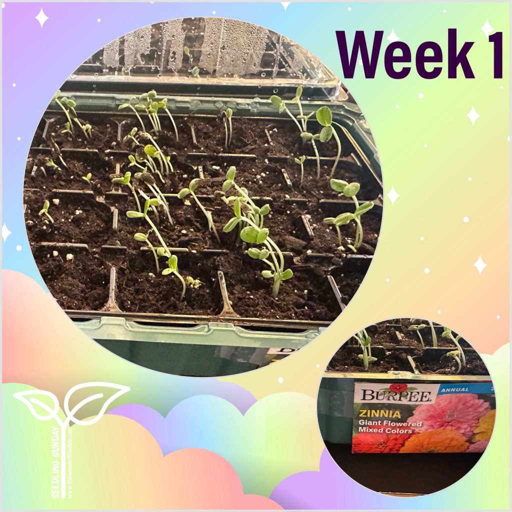 It was an excellent week of growth (and you’ll have to trust me that I did, in fact take this photos on Sunday). Three of our four trays took off. The best being the Zinnias, followed by the Butterfly Weed (total shocker!), then the Coleus and last but not least…zero visible growth from the lavender. Admittedly we may have covered them too much to get the required light..but hey…that’s why we’re experimenting and documenting. I read that lavender takes time and to be patient…so we wait…maybe not so patiently but we will wait.